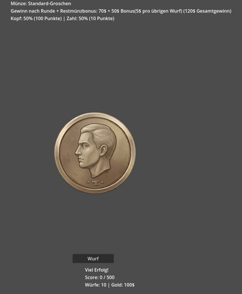 - Flip & Score: Every coin has two sides, but you decide what they’re worth. Reach the target score before you run out of throws.